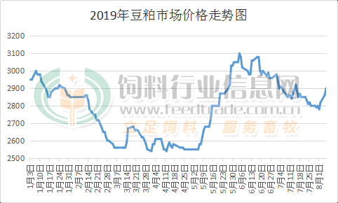 国内因人民币汇率破7以及中美贸易紧张局势加剧的担忧影响,大连豆粕期货继续大涨,主力合约已经维持在2900元/吨,豆粕现货在中美贸易争端和人民币贬值进口大豆成本是上涨压力下,继续上涨,并且今日涨幅较昨日明显增高,全国主流涨幅在30-60元/吨之间。