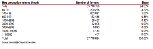 90%以上的农民(3500万人)的年出栏低于50头猪,其对总产量的贡献随着时间的推移而下降