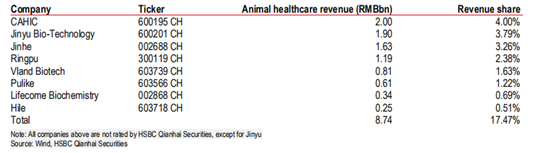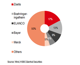 我们认为,在养猪产业链上领先公司处于有利地位。动物保健产品在养猪成本中所占比例不到10%,是保证动物安全和健康的关键。这意味养猪公司通常对动物疫苗等这些产品的价格不敏感,并高度重视产品质量。动物保健行业也有很高的进入壁垒,限制了竞争。因此,我们认为动物疫苗生产商应该保持强劲的收益,因为随着猪公司转向大规模经营,他们将更多地关注疫苗。