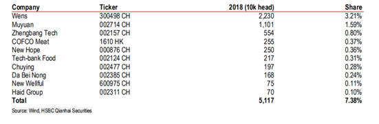 首先,鉴于生猪价格的波动和非洲猪瘟对经济的影响,我们认为许多小农将被迫退出该行业是不可避免的。但我们不认为这会给市场领先者很大的定价权,因为这个行业在未来十年将进行整合。