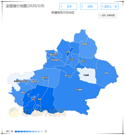全国最低猪价为新疆,数据统计,今日外三元均价为30.92元/公斤,价格较昨日下跌了0.10元/公斤,较上周上涨了0.46元/公斤。今日内三元均价为29.78元/公斤,价格较昨日上涨了0.63元/公斤,土杂猪均价为29.38元/公斤,价格较昨日上涨了0.49元/公斤。