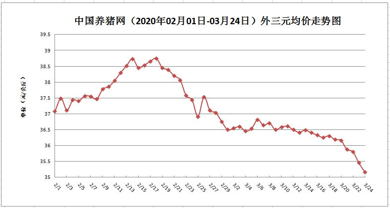 2020年03月24日-中国养猪网生猪(外三元)均价走势图