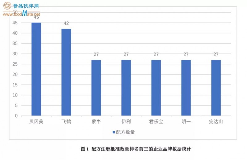 我国已有980个配方通过注册,贝因美是第一个通过配方注册的品牌,也是获得配方注册数量最多的企业(按照集团公司以及其下属公司所获批的国产配方总数量进行统计,不包括相关联的海外工厂注册的进口配方)。通过注册批准的配方数量排名前三位:第一是贝因美,第二是飞鹤,并列第三的是蒙牛(雅士利)、伊利、君乐宝、明一、完达山。具体数量如下图所示: