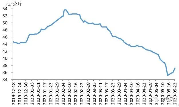 据农业农村部信息中心和山东卓创资讯股份有限公司联合监测,2020年第21周(即2020年5月18日-5月22日,以下简称本周),16省(直辖市)瘦肉型白条猪肉出厂价格总指数的周平均值为每公斤36.04元,环比跌0.8%,同比涨78.9%,较上周收窄0.7个百分点。
