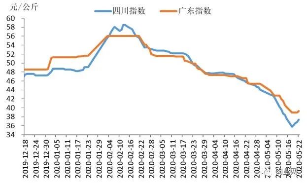 图6 四川、广东猪肉价格运行走势图