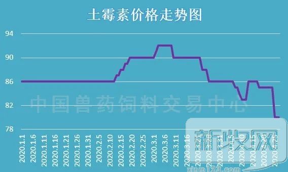 周三,土霉素市场均价为80元/千克,环比下降5.88%,是中国兽药饲料交易中心所有监测品种中,跌幅最大的产品,同时这也是土霉素近一年来录得最低的市场均价。