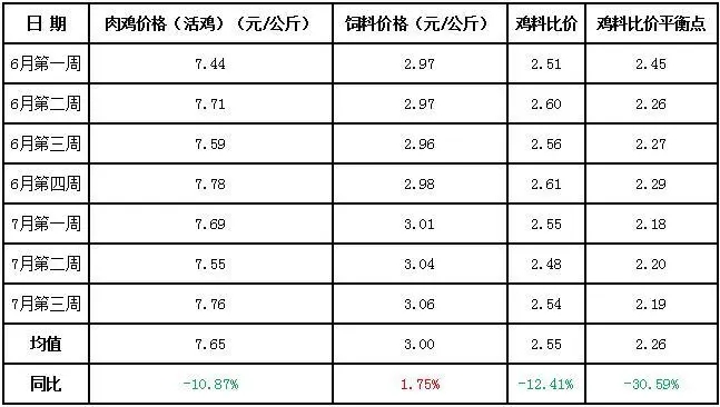 6-7月国内鸡料比价走势表