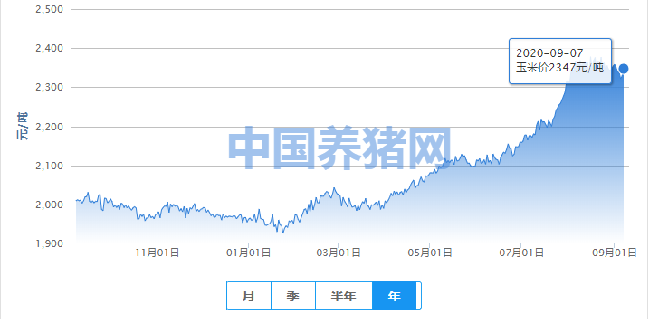 2020年09月07日全国玉米均价走势图