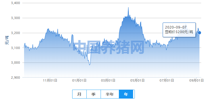 2020年09月07日全国豆粕均价走势图