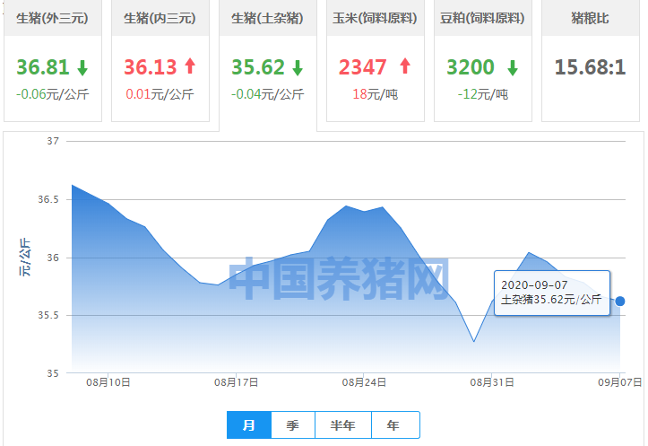 2020年09月07日全国内三元均价走势图