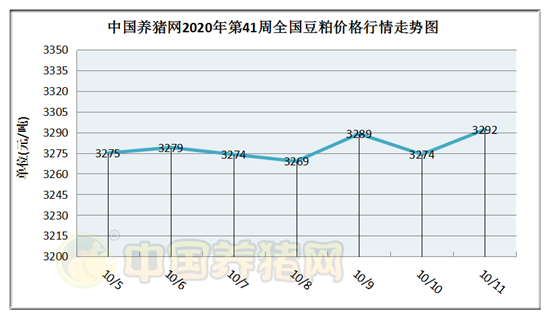 中国养猪网2020年第41周国内豆粕走势图