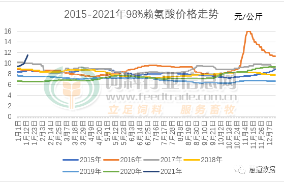 不疯狂不成魔!过去的一年,乃至刚刚步入新的一年,饲料价格一直走在刷新历史的路上...玉米突破1.5元回落后在攀高峰1.53元,豆粕出厂价达到4150元,赖氨酸、苏氨酸市价创5年新高等,原料上涨饲料企业无奈只能跟随,饲料涨价潮持续袭击...有企业甚至一次大幅度上调600元。