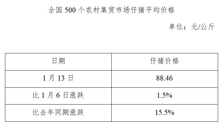 全国500个农村集贸市场仔猪平均价格(2021年1月13日)