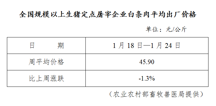 全国规模以上生猪定点屠宰企业白条肉平均出厂价格(1月18日—1月24日)