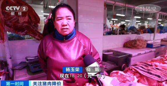 摊主杨玉荣说,目前市场猪肉销量下降了50%以上,零售猪肉价格也降了20%左右。同时,记者了解到,生猪市场的价格也在下降。