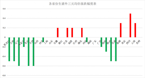 图:全国各省份涨跌幅度一览图数据来源:猪易数据
