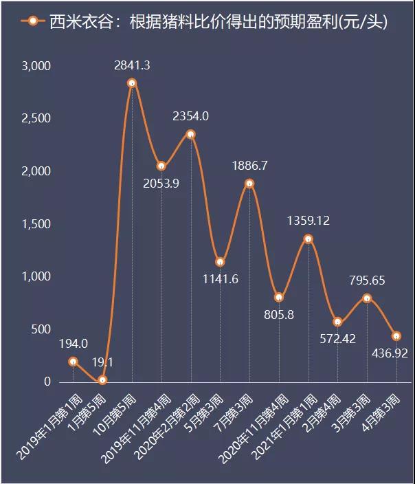 我们来看下自2019年1月以来每头猪的预期盈利趋势: