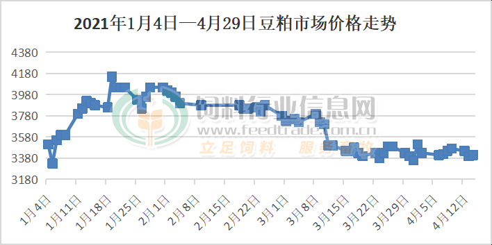 豆粕连跌3天 累计跌幅近130元