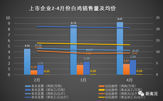 4月份,白羽肉鸡上市企业陆续公布月度销售数据。
