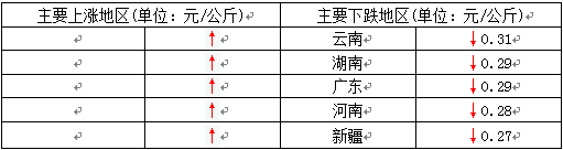 今日全国27省、直辖市范围内,共计0省份猪价上涨,27省份猪价下跌。全国最高价为广东,较昨日下跌0.29元/公斤于19.27元/公斤;全国最低价为黑龙江,较昨日下跌0.24元/公斤于16.04元/公斤。