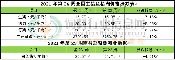 商务部监测数据显示,6月第1周商务部监测全国白条猪批发均价为23.57元/公斤,环比下跌4.61%。