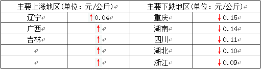 今日全国27省、直辖市范围内,共计4省份猪价上涨,23省份猪价下跌。全国最低价为新疆,较昨日下跌0.08元/公斤于12.30元/公斤。