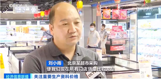 北京某超市采购 刘小雨:我们的供应增加了猪肉的产能,现在所有门店的供应量比较充足,我们增加了很多产地的资源(供应量)。