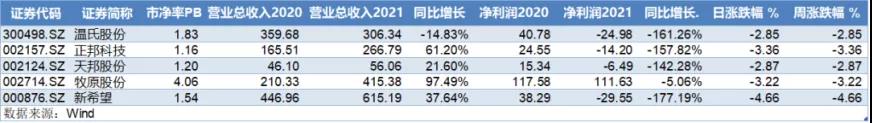 如今,猪价、肉价跌惨,已有部分小散户扛不住而离场,大企业也亏损严重,受本轮猪周期影响,前五大生猪养殖企业牧原股份、正邦科技、温氏股份、新希望、天邦股份2021年上半年的净利润均同比大幅向下降。近日,生猪价格仍在持续下降,反映在股价上,这五家企业近五日均持续下跌。