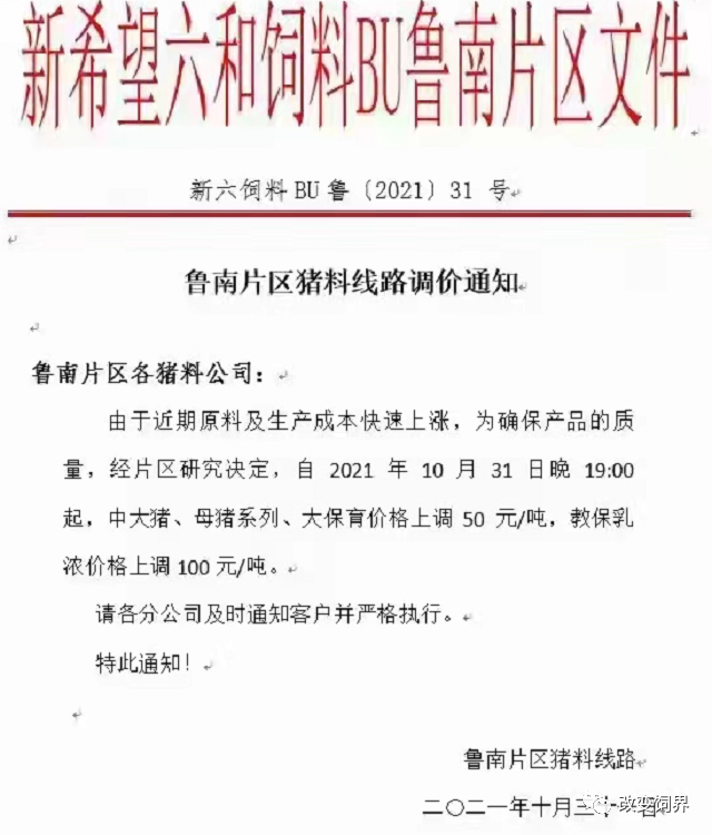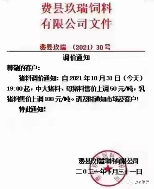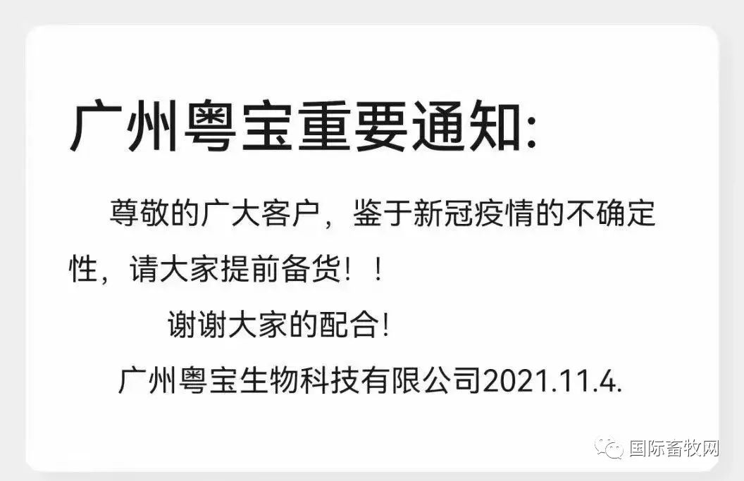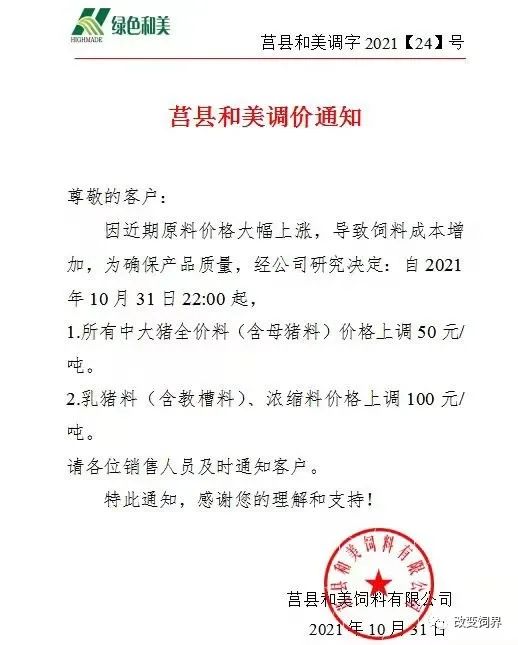 11月的第一周,由于饲料原料的高涨以及疫情在多地出现的情况下,饲料企业已发函通知涨价。企业也提醒大家抓紧备货,以防饲料短缺对养殖产生不利影响。