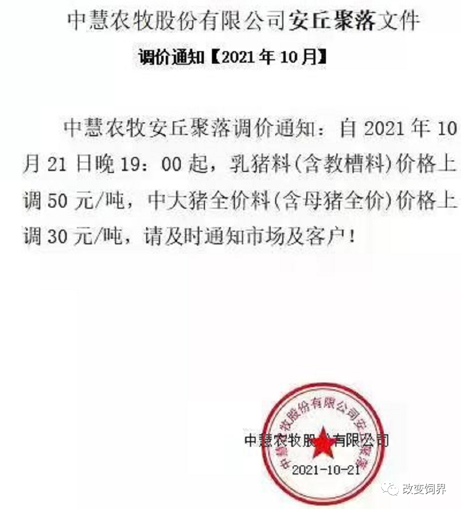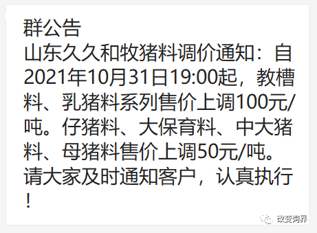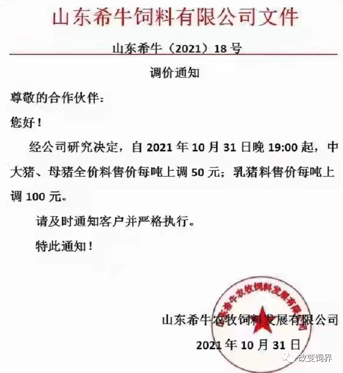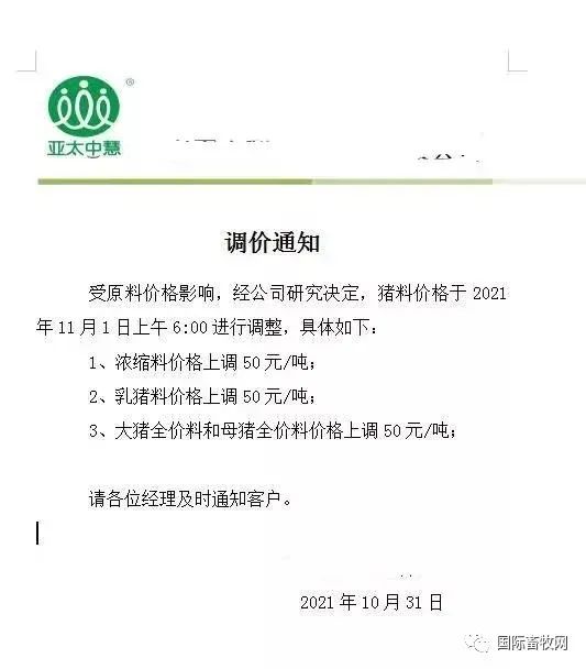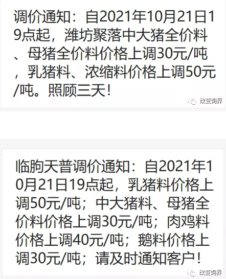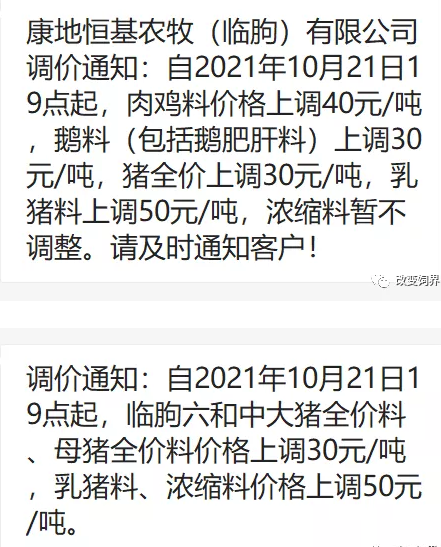 11月饲料企业涨价清单