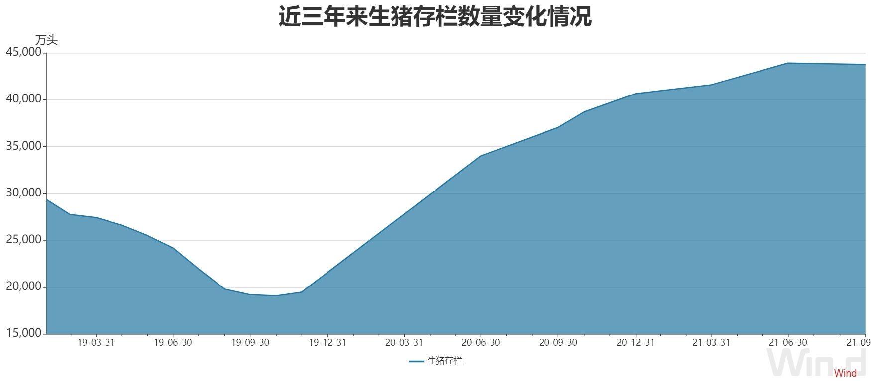 记者梳理发现,一季度末,全国生猪存栏41595万头,同比增长29.5%;其中,能繁殖母猪存栏4318万头,同比增长27.7%。二季度末,生猪存栏43911万头,同比增长29.2%;其中能繁殖母猪存栏4564万头,同比增长25.7%。三季度末,生猪存栏43764万头,同比增长18.2%;其中,能繁殖母猪存栏4459万头,同比增长16.7%。
