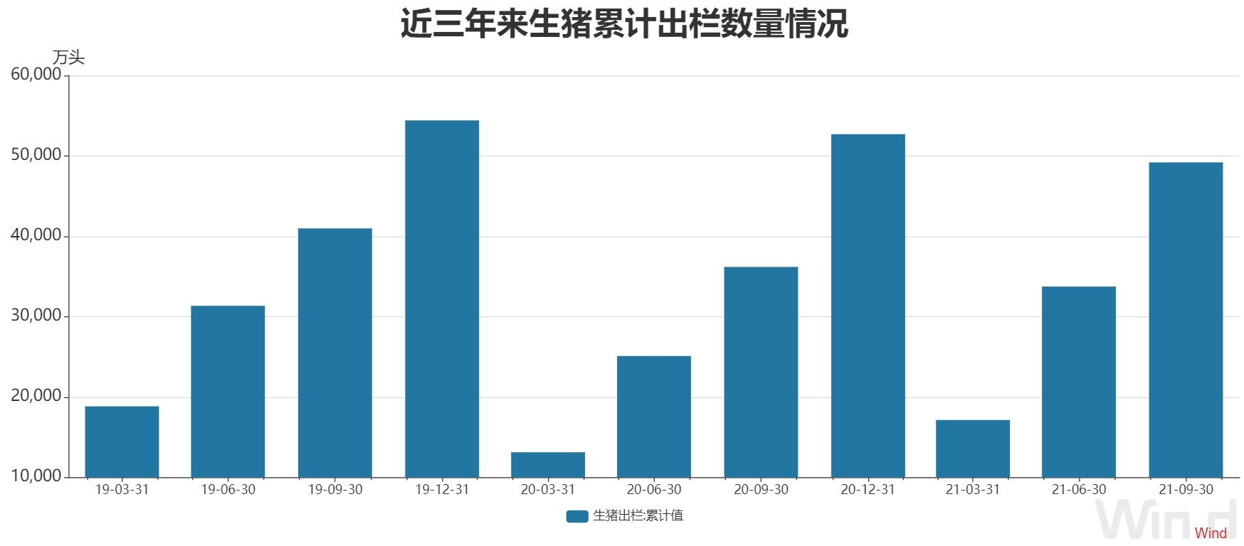 另外,从生猪出栏量来看,一季度,全国生猪出栏17143万头,比上年同期增长30.6%;猪肉产量1369万吨,增长31.9%。上半年,生猪出栏33742万头,比上年同期增长34.4%;猪肉产量2715万吨,增长35.9%。前三季度,生猪出栏49193万头,比上年同期增长35.9%,增速比上半年进一步加快1.5个百分点;猪肉产量3917万吨,增长38.0%。
