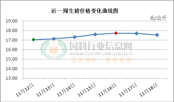 2. 主流市场内三元大猪全国销售均价17.19元每公斤,相比昨天下跌0.60%;
