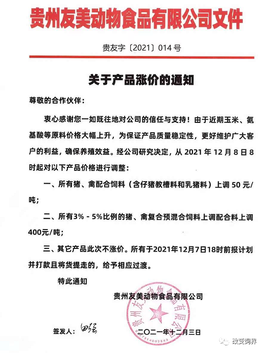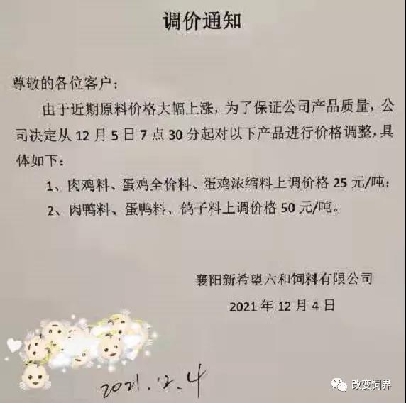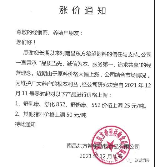 12月第2轮饲料涨价消息:东方希望、新希望等涨价
