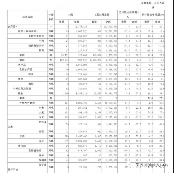 2021年12月进口猪肉17万吨,同比下降62%,其它主要商品进口见下表: