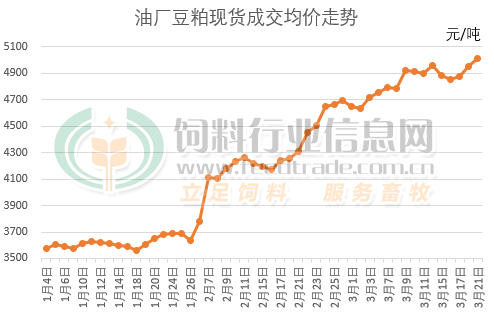 今年以来,豆粕价格一直在挑战人们的底线,无论是期货还是现货价格,均不断刷新纪录;据饲料行业信息网慧通数据统计,油厂豆粕成交均价从1月份到3月21日,已突破5010元/吨,涨幅高达40%。另据海关数据显示,今年前2个月,我国进口大豆1394.2万吨,同比增加4.1%,其中从美国进口1004万吨,同比去年减少16%,从巴西进口351万吨,同比提高241%。