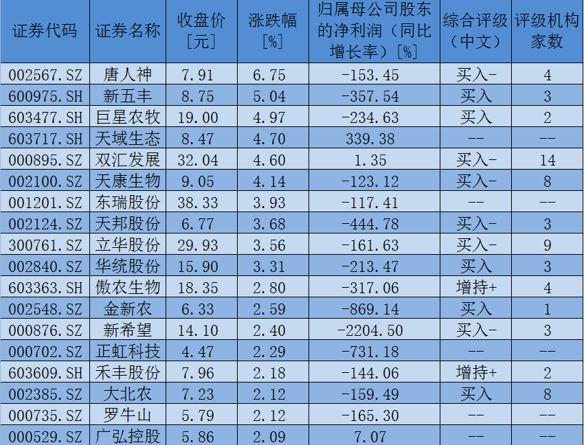 表:5月9日,猪肉板块涨幅超2%个股一览