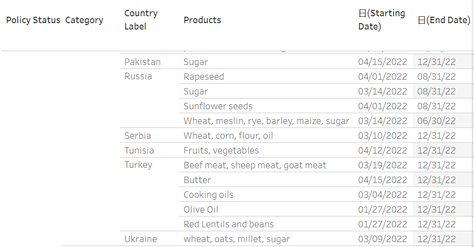 实际上,在俄乌冲突的持续、气候变化等多重因素影响下,食品保护主义在全球多国兴起。根据国际粮食政策研究所开发的实时跟踪器,在俄乌冲突开始后的几个月里,禁止粮食出口的国家名单不断加长。