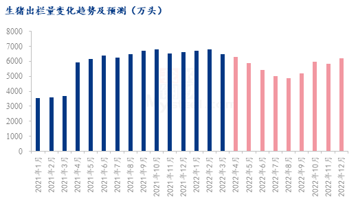 整体来说,2021年上半年养殖场补栏量较大,2022年上半年为前期产能的集中释放期,因此预计2022年生猪出栏量或高于2021年,或达7.07亿头左右。
