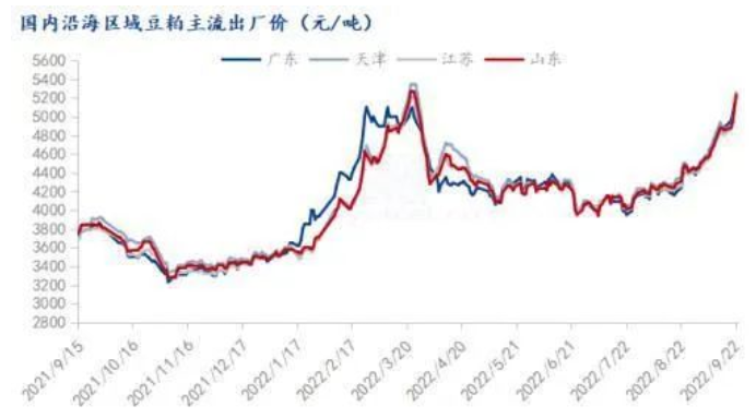 国内沿海区域豆粕主流出厂价