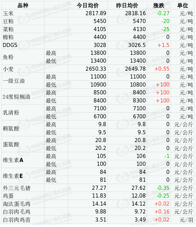 湖州亿盛饲料:10月25日起,所有饲料上调200元/吨。
