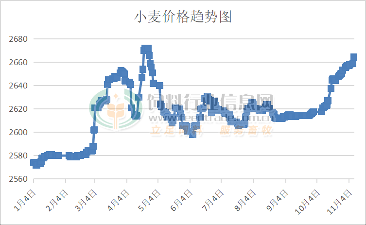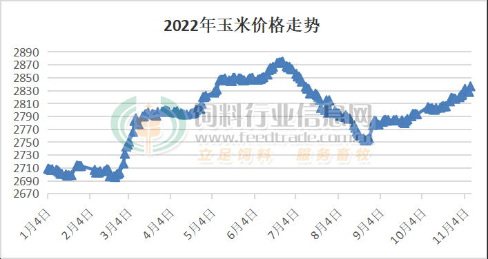 国内主产区部分地区物流运输难度较大,大型企业担心本地粮源被烘干塔和粮商抢走,陆续提价抢收,支撑现货价格继续偏强。11月份中国陈化玉米库存及供应将继续下降,贸易商依旧掌控着主要货源。慧通数据统计为,8日玉米价格震荡走高。到厂松原2680涨80辛集2850德州2864跌10宝鸡2860到站南京2960南昌2970涨40锦州港2830涨10蛇口港2960。