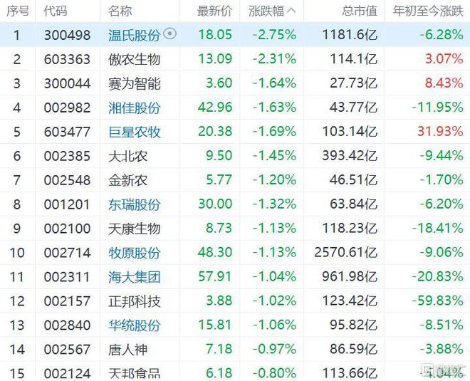 格隆汇11月9日丨猪肉股走弱,温氏股份、傲农生物跌2%,湘佳股份、巨星农牧、大北农、东瑞股份跌1%,华统股份、唐人神跟跌。11月份第一周,猪价结束了连续11周的单边上涨态势,养殖户压栏惜售的情况也有所好转。专家认为,从供需形势来看,年前猪肉价格已经见顶。在全国不少地方,猪肉价格10月底每斤曾接近21块钱。而进入11月份,一些地方的猪肉价格开始回落。商户表示,猪肉价格太高,消费量就减少,这反过来推动了价格回落。
