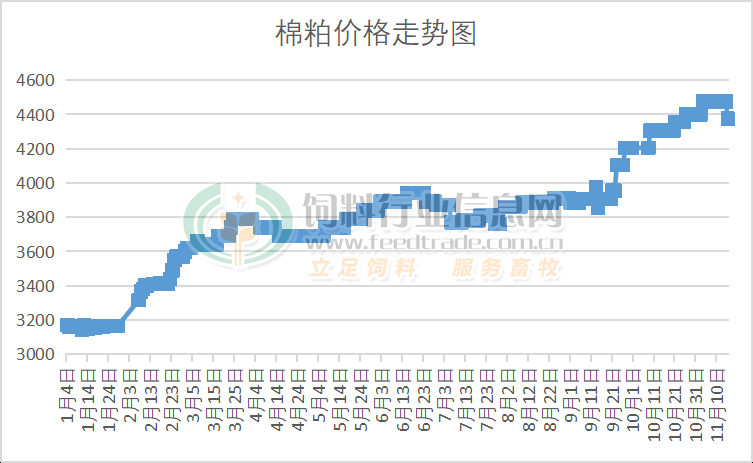 近几日强势许久的粕类家族携手下跌,其中豆粕跌幅要领跌菜粕、棉粕。慧通数据统计为,豆粕连跌3天,市场主流均价累计跌幅160元/吨;菜粕较11月10日累计下跌80元/吨;棉粕价格较上一日下跌100元/吨。