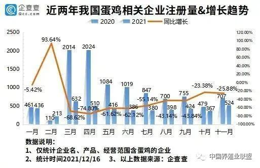 2022年上半年,我国新增蛋鸡相关企业1016家,同比减少23.2%。总体来看,近十年,我国蛋鸡相关企业注册量波动较大,平均以2-3年为1个周期,再来看去年的数据,便可从中感受一二。