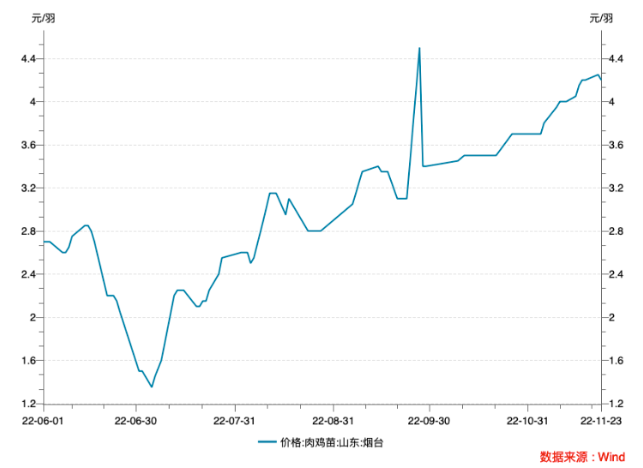 山东烟台肉鸡苗价格走势。数据来源:Wind
