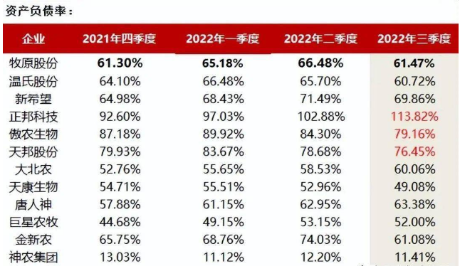 截至今年第三季度末,上市猪企业绩“飘红”,总盈利超过百亿元,但是身背负债的数额也在与日俱增。据不完全统计,已经发布第三季度财报的17家上市猪企总负债超过4000亿元,其中第三季度收入最高的牧原股份的负债率也超过了60%。