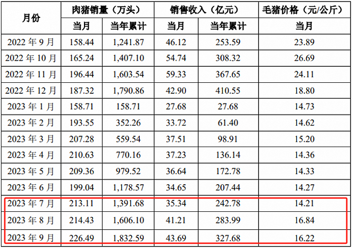 具体来看,今年第三季度温氏股份肉猪销售654.03万头,销售收入为120.24亿元。7月-9月公司毛猪价格分别为14.21元/公斤、16.84元/公斤、16.22元/公斤,相较于今年一二季度涨势明显,但相较于去年四季度价格还是有所下滑。