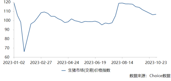 值得注意的是,尽管今年三季度生猪价格有所反弹,但十月以来生猪价格又有所回落。iChoice数据显示,生猪市场交易价格指数在今年8月到达阶段性新高,随后震荡下行。
