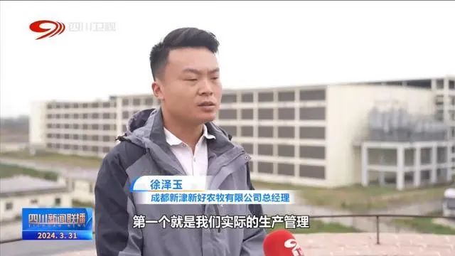 记者杨唯一:我身后的这栋五层楼的建筑,是新希望新津智能猪场的猪舍。这种多层建筑养殖可以节约场地,从而减少成本。可以看到,面向我们这一侧有很多黑色的窗格,它是空气过滤系统,能够减少病毒在空气中的传播,从而保证生猪的健康。